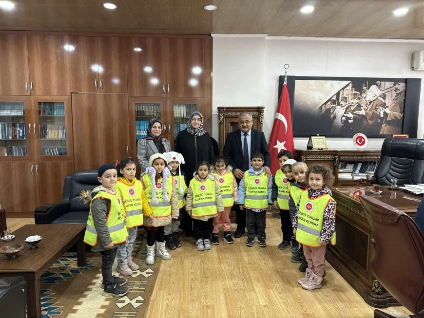 Iğdır merkeze bağlı Şükrü Turan Kur’an Kursu’nun minik öğrencileri, Iğdır İl Müftüsü Zahit Demirel’i makamında ziyaret ederek hem müftülük kurumunu yakından tanıma fırsatı buldu hem de unutulmaz bir gün yaşadı. Gerçekleşen anlamlı ziyaret, samimi ve sıcak görüntülere sahne olurken, çocukların heyecanı ve mutluluğu dikkat çekti.